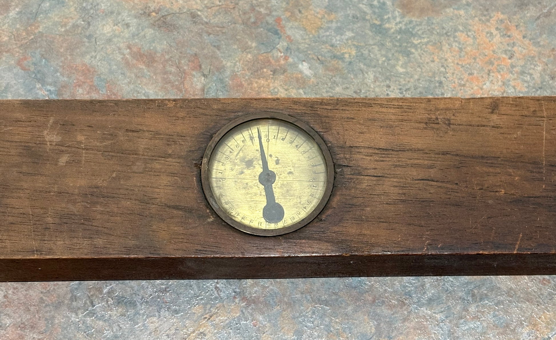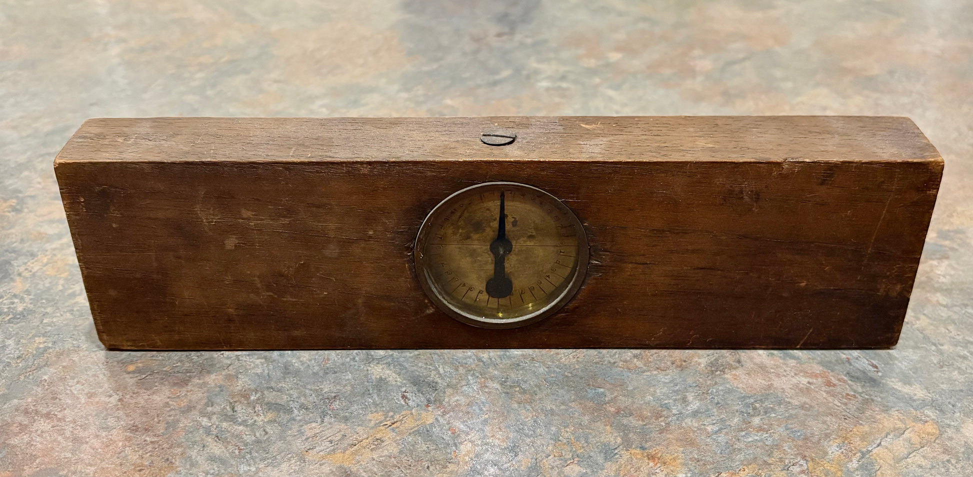 A UNIQUE 12" INCLINOMETER LEVEL PROBABLY CRAFTSMAN MADE WITH A METAL SHOP TAG ON IT. LEVEL IS UNSIGNED AS TO A MAKER. METAL TAG READS " BAKER & SON ( INC ),THE ELECTRIC SHOP, ANYTHING ELECTRICAL OR MECHANICAL ". INCLINOMETER DIAL IS ON BOTH SIDES AND VERY WELL MADE. WOOD LOOKS TO BE OAK WITH A DARK FINISH. LEVEL MEASURES 12" X 3 1/8" X 1 3/8". EXCELLENT CONDITION, BOTH INCLINOMETERS MOVE FREELY. PROBABLY ONE OF A KIND AND NEVER SEE ANOTHER ONE.